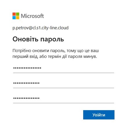 1. перейдіть за покликанням https://aka.ms/mfasetup та введіть логін і тимчасовий пароль, які були надані відділом продажу: