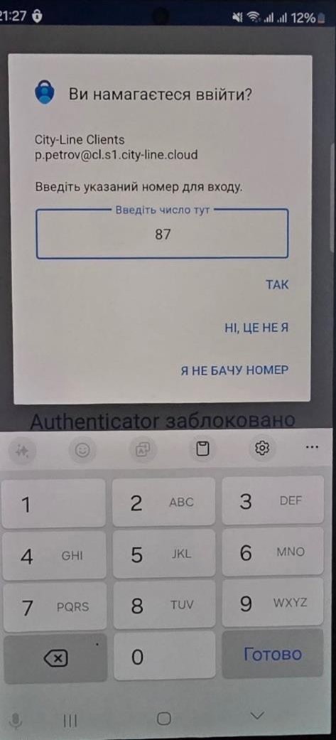 7. після успішного сканування QR-коду необхідно перевірити працездатність двофакторної автентифікації. На наступному етапі у вебоглядачі буде наданий код з двох цифр, які потрібно ввести у мобільному застосунку: