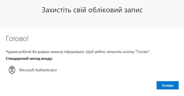 Підтвердженням налаштування буде наступне повідомлення:
