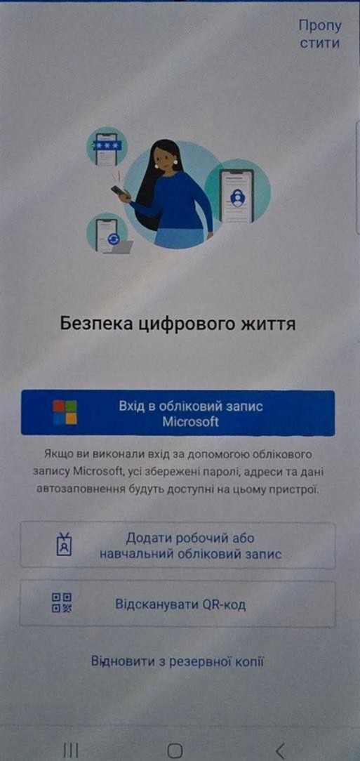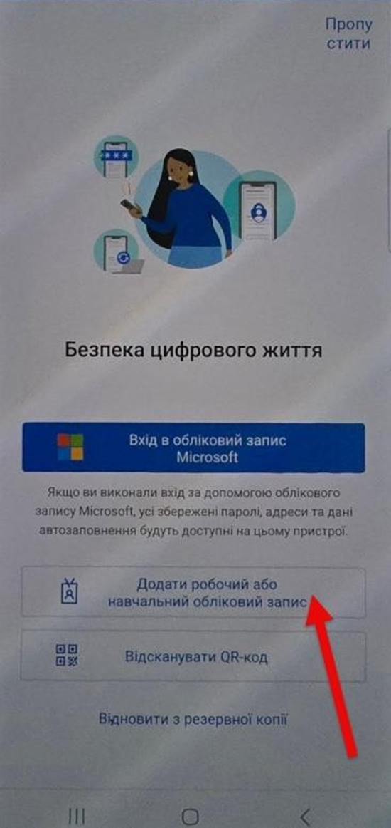 6. Повертаємося до мобільного застосунку та на тискаємо «Додати робочий або навчальний обліковий запис »